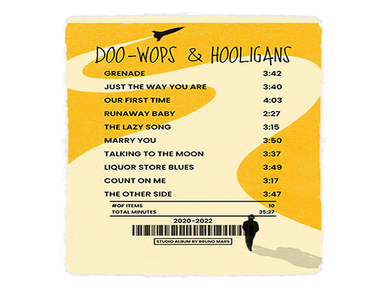 Motif inspiré du reçu de Doo-Wops & Hooligans (Deluxe) (par Bruno Mars). Créé par RugReceipts™.