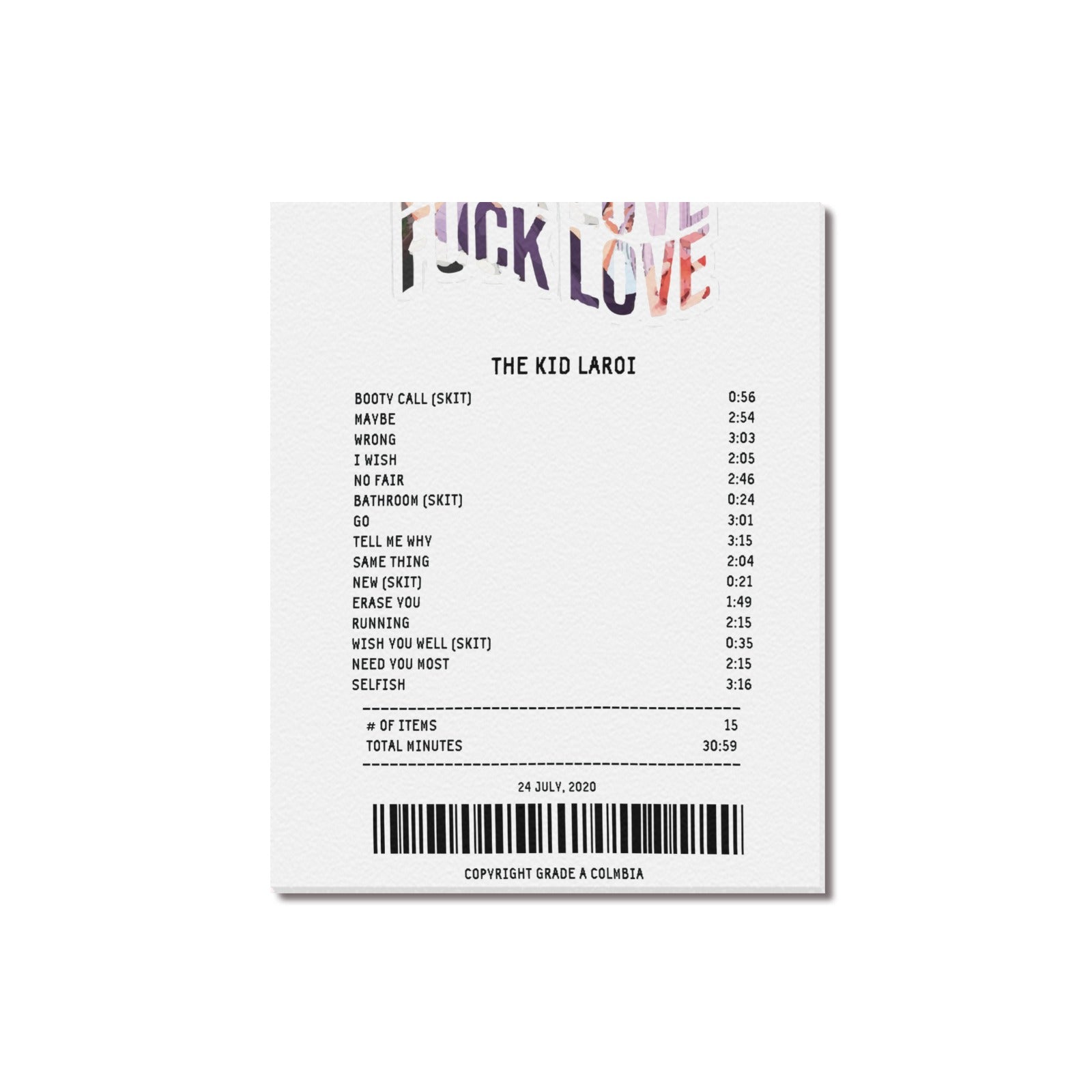 Motif inspiré du reçu de l'album studio de Laroi, Fuck Love. Créé par RugReceipts™.