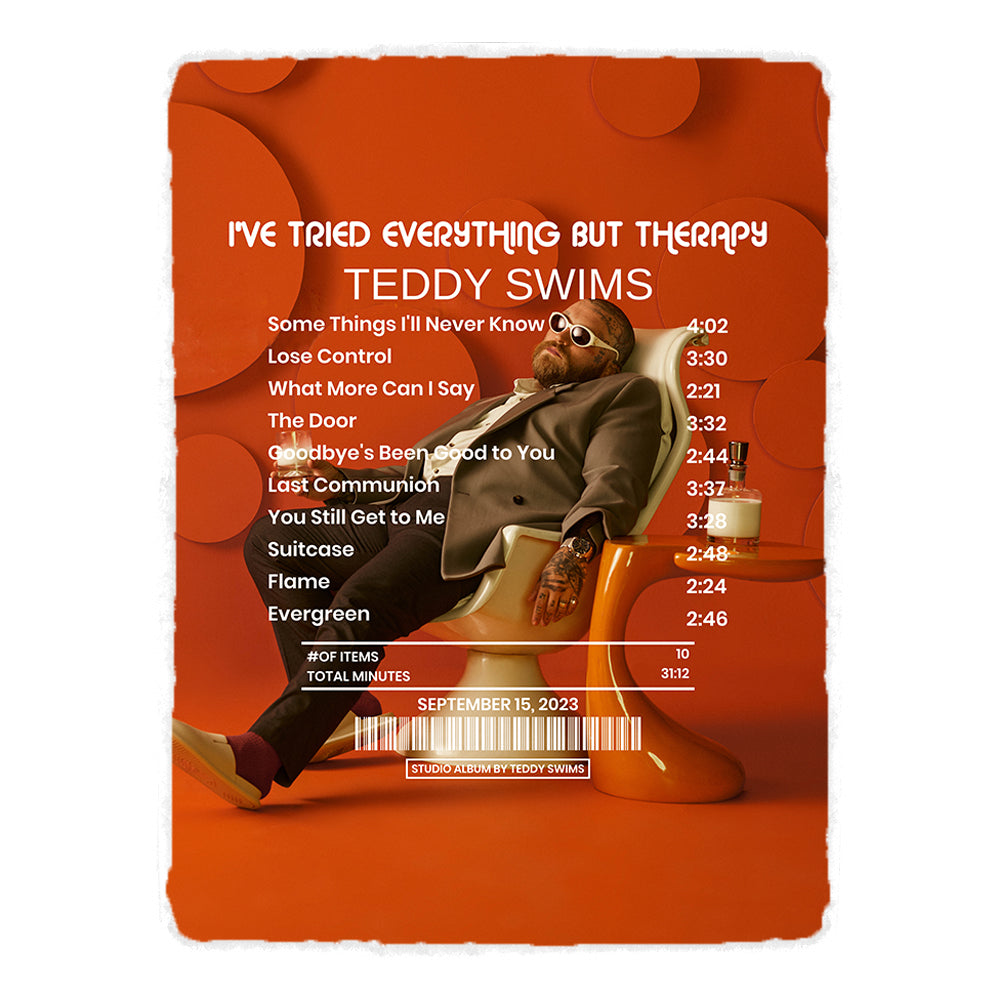 Conception inspirée du reçu de The I've Tried Everything But Therapy de Teddy Swims. Créé par RugReceipts™.