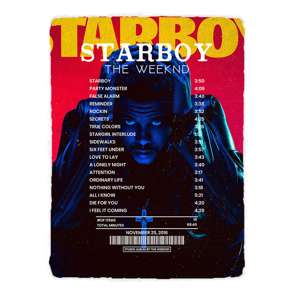 Motif inspiré du reçu de Starboy By The Weeknd. Créé par RugReceipts™.