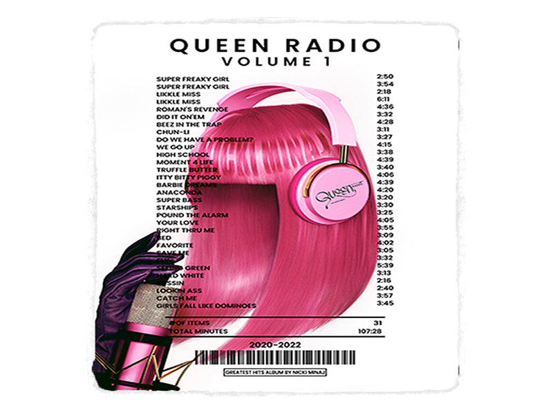 Receipt inspired design of Queen Radio: Volume 1 (by Nicki Minaj). Created by RugReceipts™.