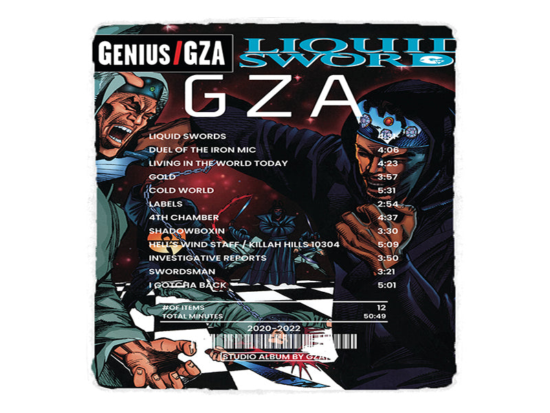 Receipt inspired design of GZA - Liquid Swords. Created by RugReceipts™.