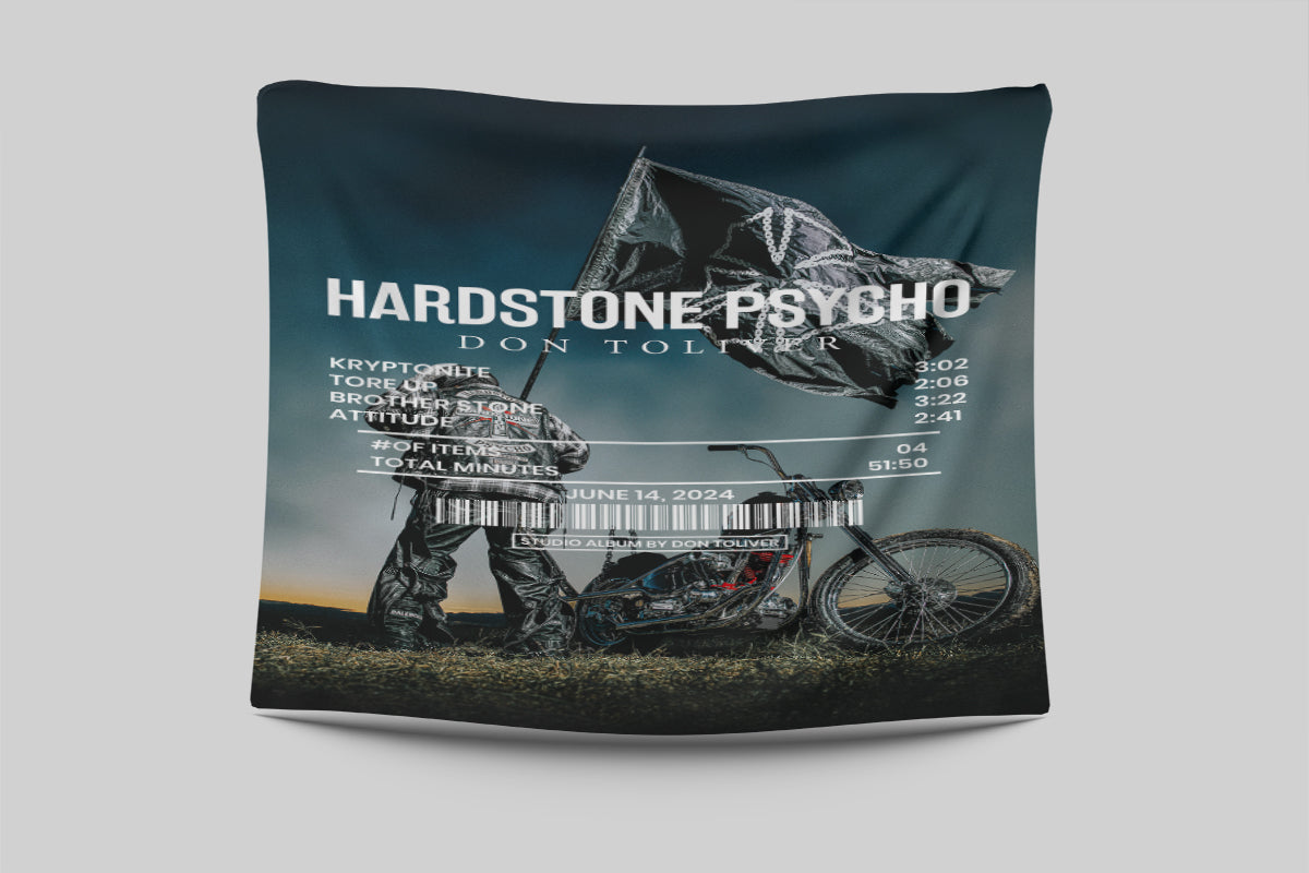 Receipt-inspired blanket design of Hardstone Psycho By Don Toliver. Each of our album receipt blankets are printed with our HP Stich S300 dye-sublimation printer.
