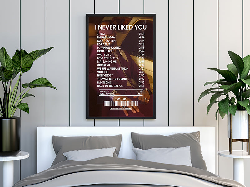 Receipt inspired design of I NEVER LIKED YOU (by Future). Created by RugReceipts™.