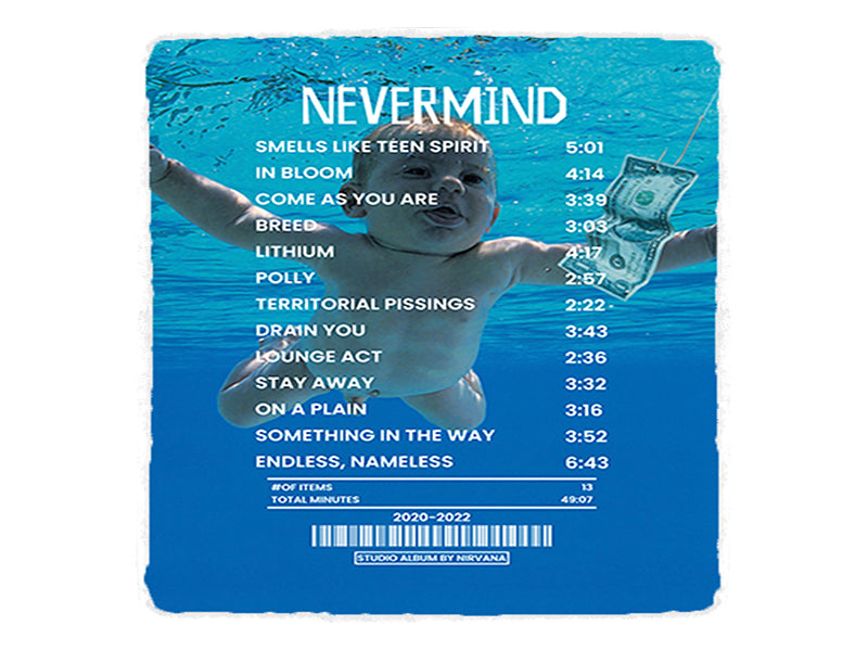 Receipt inspired design of Nevermind (by Nirvana). Created by RugReceipts™.