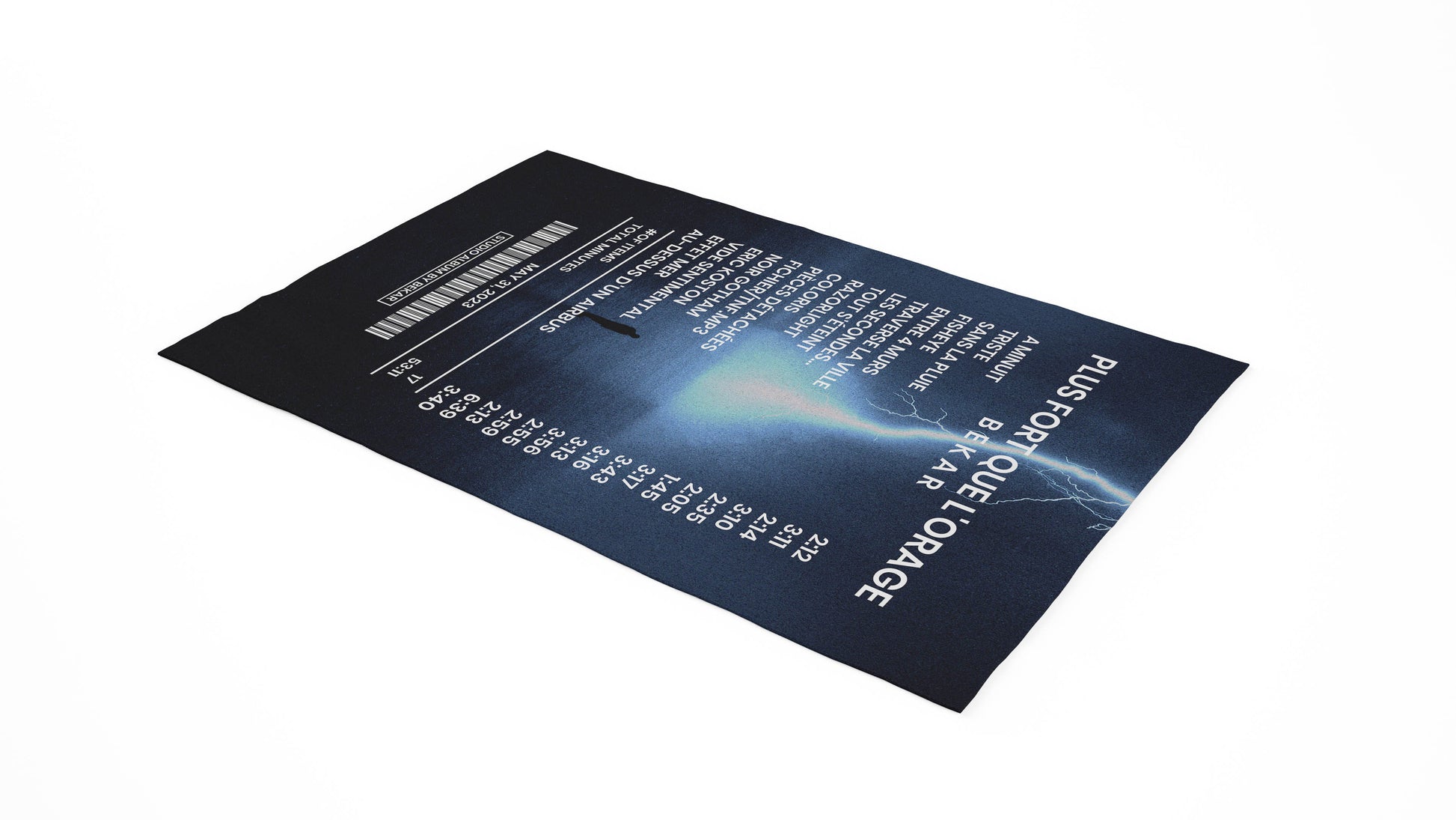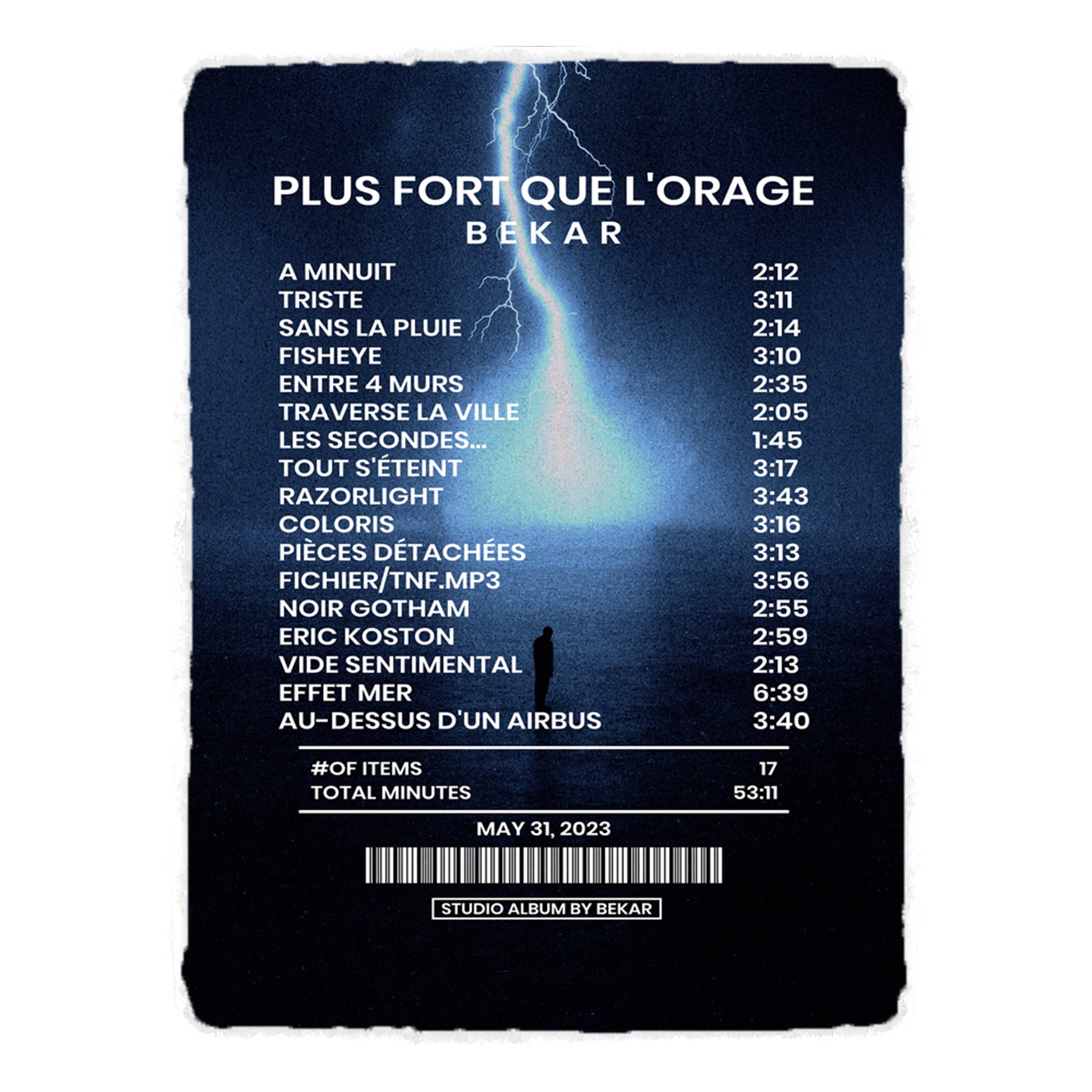 Receipt inspired design of Plus Fort Que L'orage By Bekar. Created by RugReceipts™.