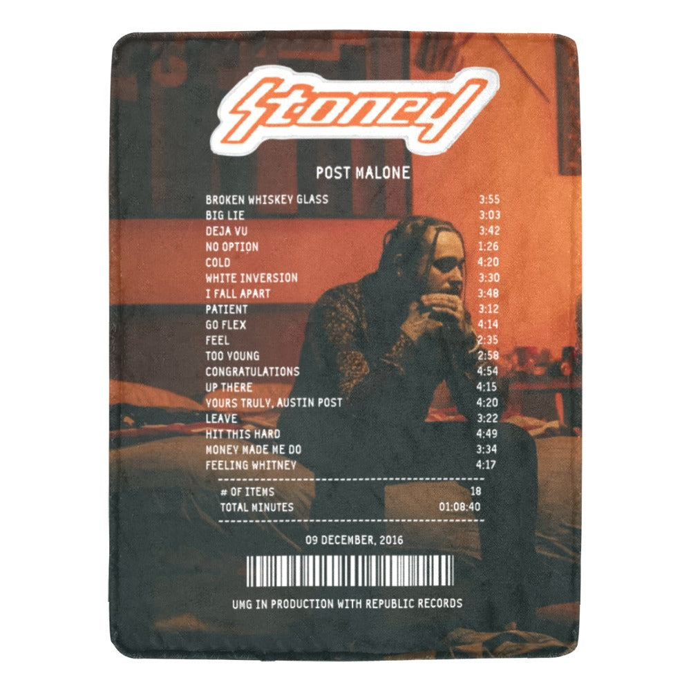 Receipt inspired blanket design of Post's studio album, Stoney. Created by RugReceipts™.