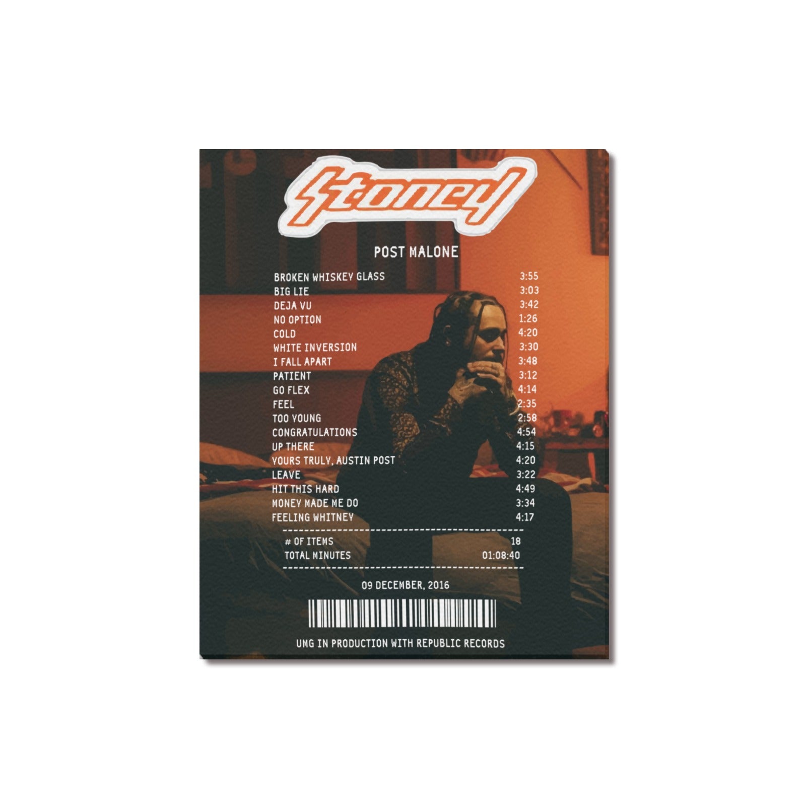 Receipt inspired design of Post's studio album, Stoney. Created by RugReceipts™.
