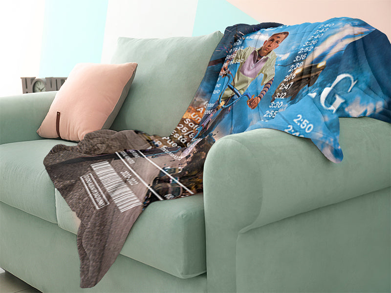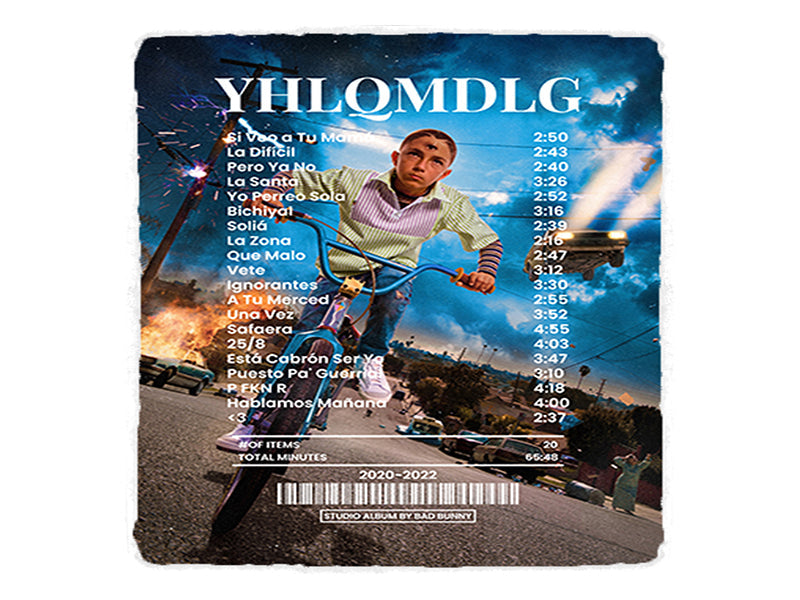 Receipt-inspired blanket design of YHLQMDLG (by Bad Bunny). Each of our album receipt blankets are printed with our HP Stich S300 dye-sublimation printer.